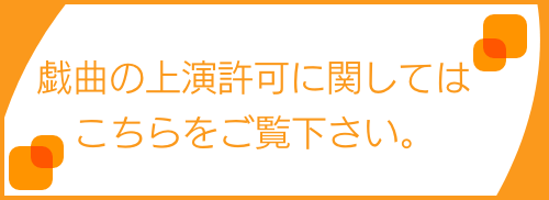【販売リスト】・製本=稽古用に製本した台本です。 ・原稿=原稿状態の製本されていない台本です。 ・データー=ダウンロード販売の台本です。*販売形式が(ー)の戯曲は、現在サイトにて販売しておりませんのでお問い合わせください。 ・DVD=DVDディスク ・Blu-ray=Blu-rayディスク(要Blu-ray対応プレイヤー) |